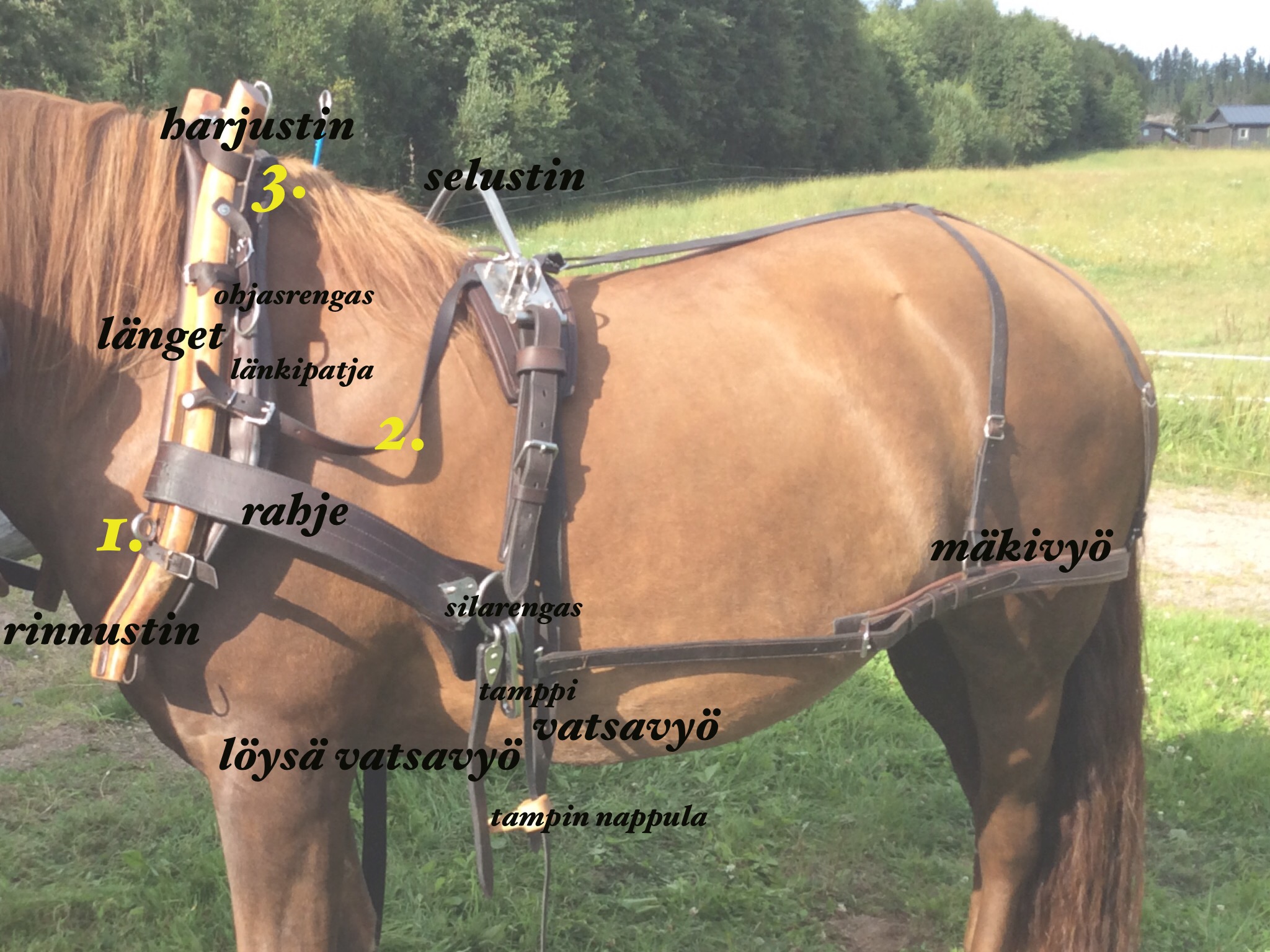 Suomalainen sila- / tamppivaljastus toimii ja valjastetaan samalla tavalla. Suomalainen tamppi on yleensä paksua nahkaa.
